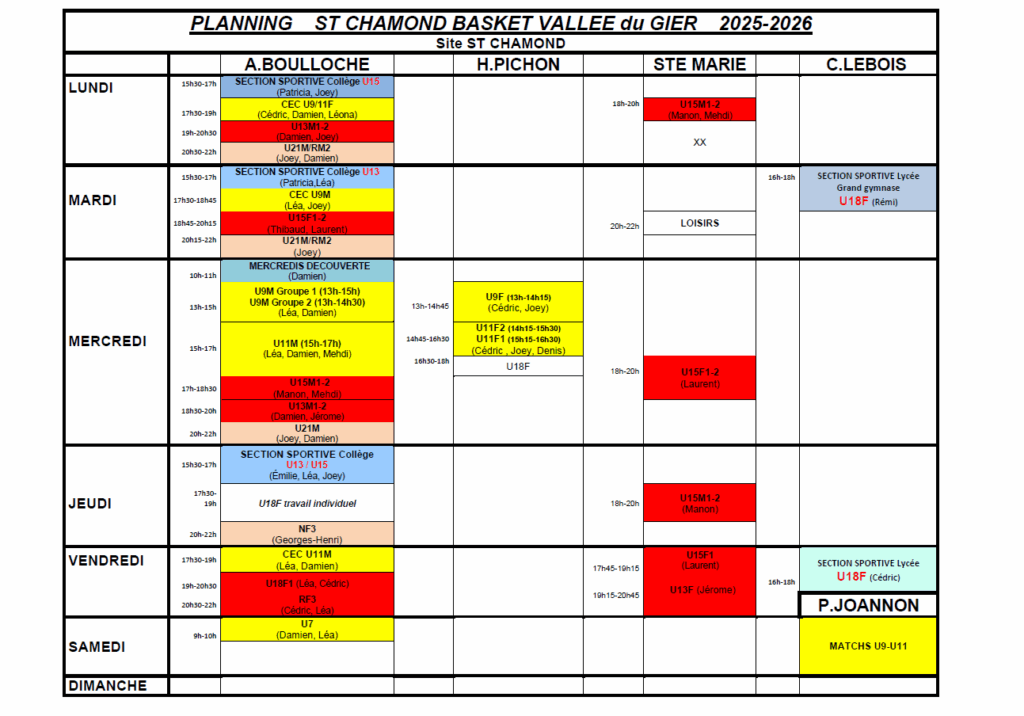 Planning d’entrainements