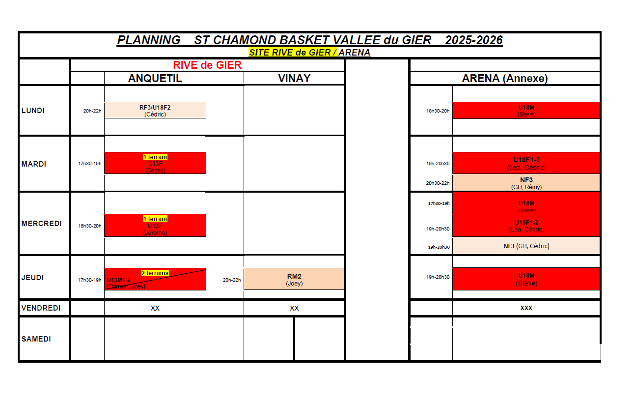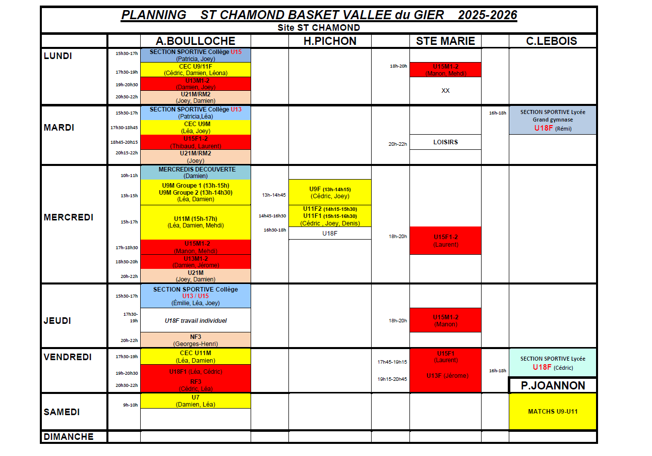PLANNING D’ENTRAINEMENTS